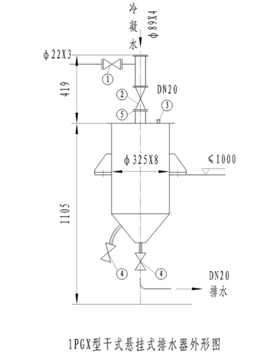 3、當(dāng)排水器檢修時,應(yīng)先閉閥門②,打開管堵③,插上盲板⑤,放掉冷凝水,即可檢修。